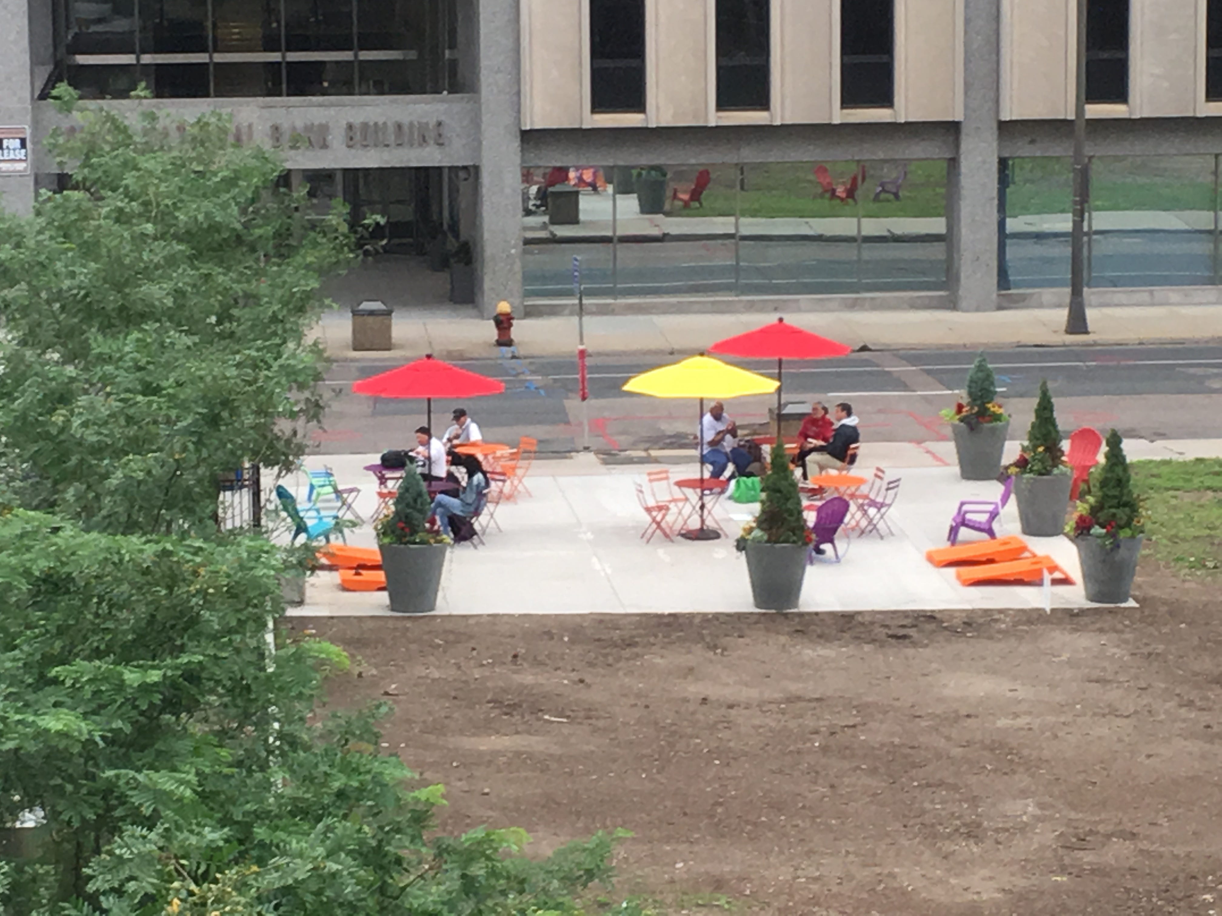 With summertime almost over, we kicked into gear and were able to implement a slimmed-down activation of the space: a 1,000 ft. plaza with some movable seating, planters, lawn games, and weekly concerts. Spanning only six weeks, the project provided proof of concept and generated new resources to expand the effort the following summer: